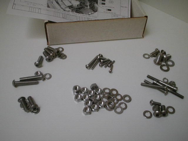 The kit that I am offering comes with a 64 piece fastener set in stainless steel. Bolts, flat washers, and lockwashers are all stainless steel and the button head style bolts (similar to the ones in the middle of the valve cover) can be polished to a high luster using a compound and buffing wheel (see the pic below.) The bolts included in the kit have a plain stainless finish, but I will polish the bolt heads for $10 more. The bolts are bagged and come with an instruction diagram showing their locations. The set includes bolts for the front engine bracket, the intake manifold brackets, idle air control motor, DIS module , throttle body, fuel rail hold down, cam cover, alternator bracket, and others. I do not include the intake manifold to head bolts, as these should be torqued in sequence and are not as visible as the others. I have tried to include all of the most visible fasteners on the SHO's Yamaha engine.